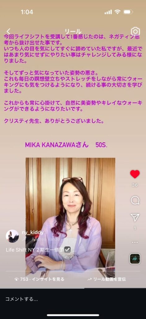 これからも常に心掛けて、自然に美姿勢やキレイなウォーキングができるようになりたいです。